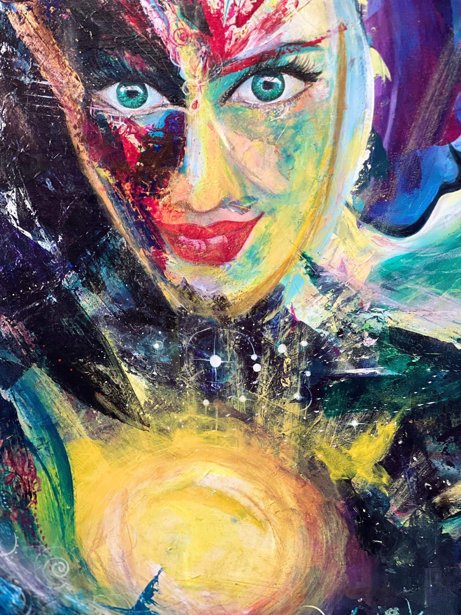 Ma pratique est un dialogue entre ce que j’ai appris et ce que j’ignore encore. Elle honore cette vérité simple : au fond, je ne sais rien. Et c’est précisément dans cet espace d’ouverture que l’inspiration peut me traverser et que mes univers se dévoilent sur la toile. Chaque toile devient alors un passage, une trace de ces rencontres silencieuses avec l’invisible qui nous entoure